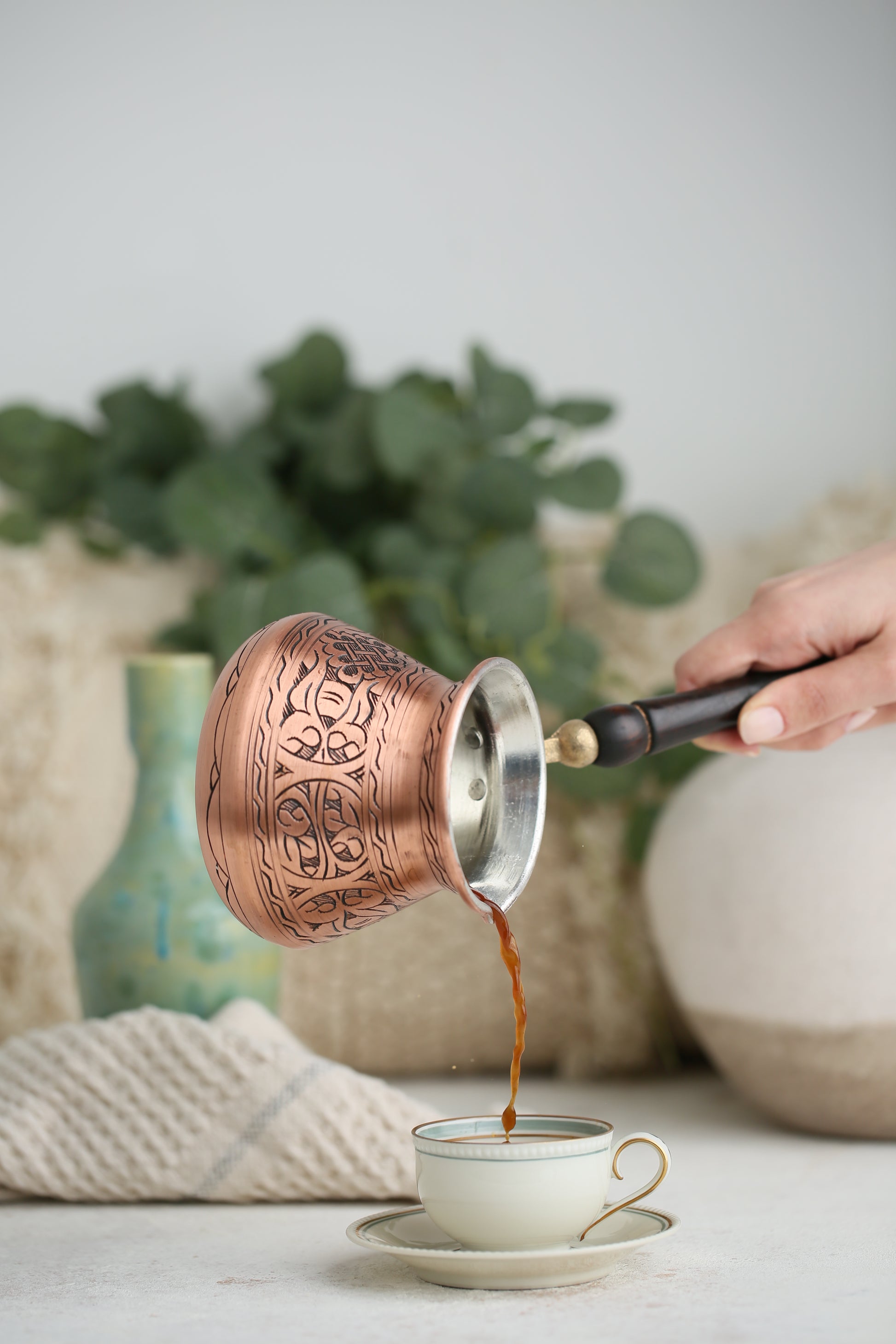 Bring a touch of tradition and elegance to your kitchen with this handmade Copper Turkish Coffee Pot (also known as coffee cezve or coffee jazzve). Whether you're brewing rich Turkish coffee, Greek coffee, or warming milk, this beautiful stovetop coffee pot is designed to deliver both functionality and authentic flavor.